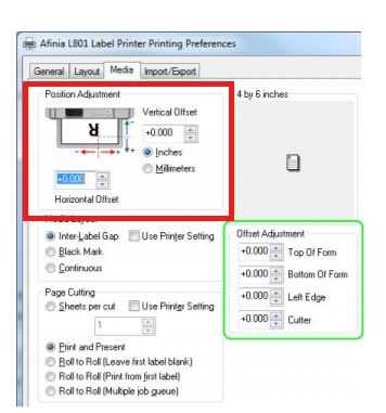 To cut, I just moved the cutter across the path of the web. Worked great. Looking at the cut position, I noticed I would want to add about a 1/16” of an inch. The cutter adjustment in the driver enables this configuration; but does not say which direction is positive or negative. I’ve learned later that positive ejects the labels out further.